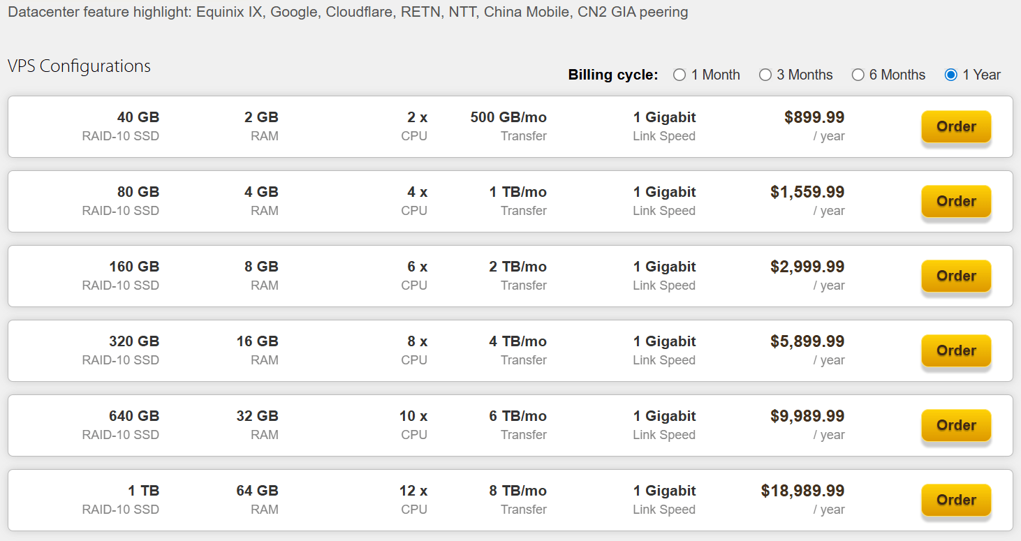 官方网址:https://shop.novacloud-hosting.com/ 配置信息如下 1 Intel XEON Core 2GB DDR4 ECC 20GB NVMe Storage (Raid 1) 2000GB HDD Storage (Raid-6 + NVMe-Cached) 1xIPv4 + IPv6 included 2,5 Gbit/s Uplink 7,5TB Traff […]